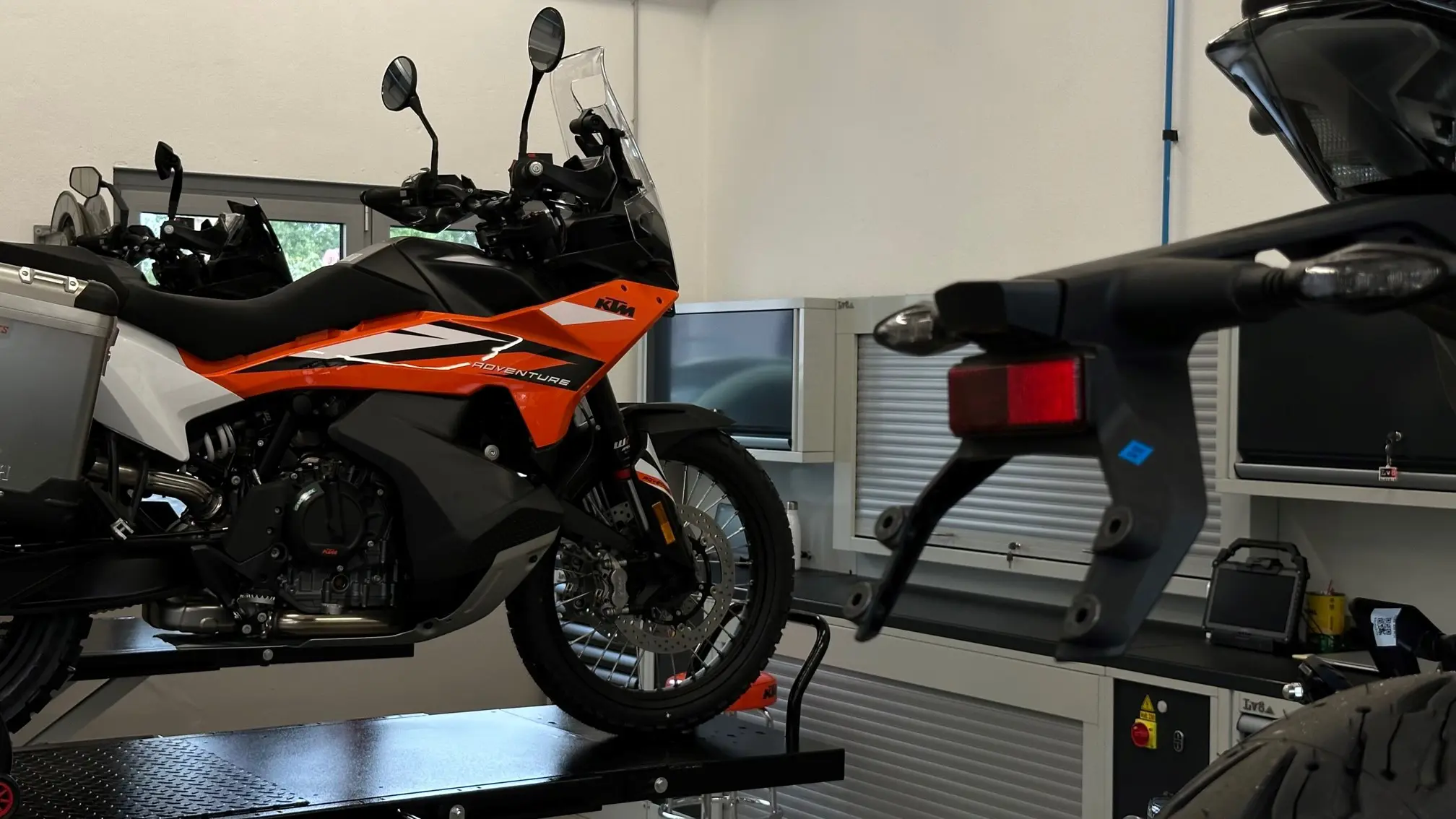 Guagliumi Cars benötigte professionelle Werkstattausrüstung speziell für Zweiräder, wie eine Werkbank für die Motorradaufhängungen und Motorradhebebühnen mit Frontsplit für den kompletten Ausbau der Gabeln.