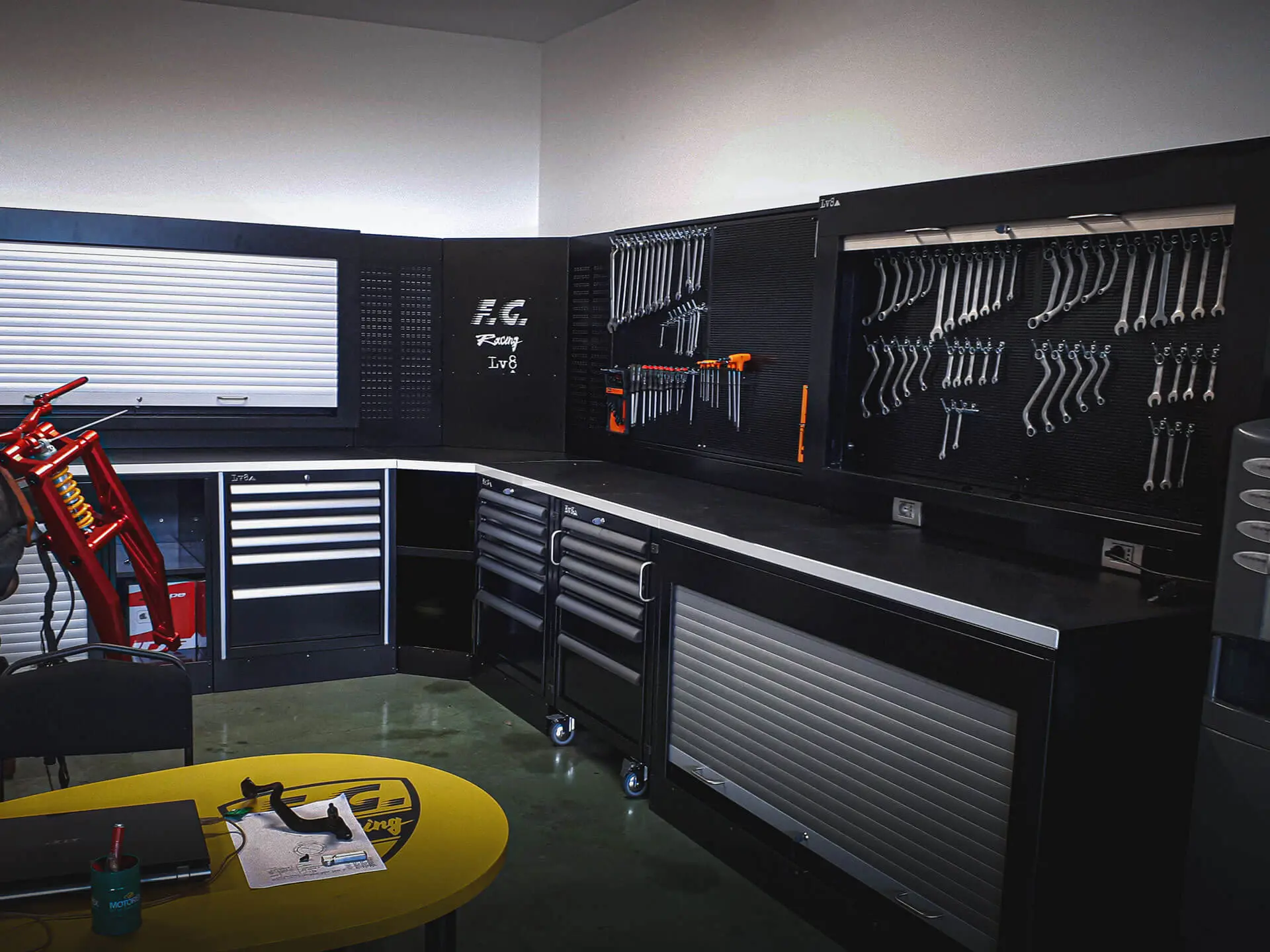 Therefore, a workshop and R&D area of great functionality and design could not be missing, in accordance with the F.G. Racing brand identity.