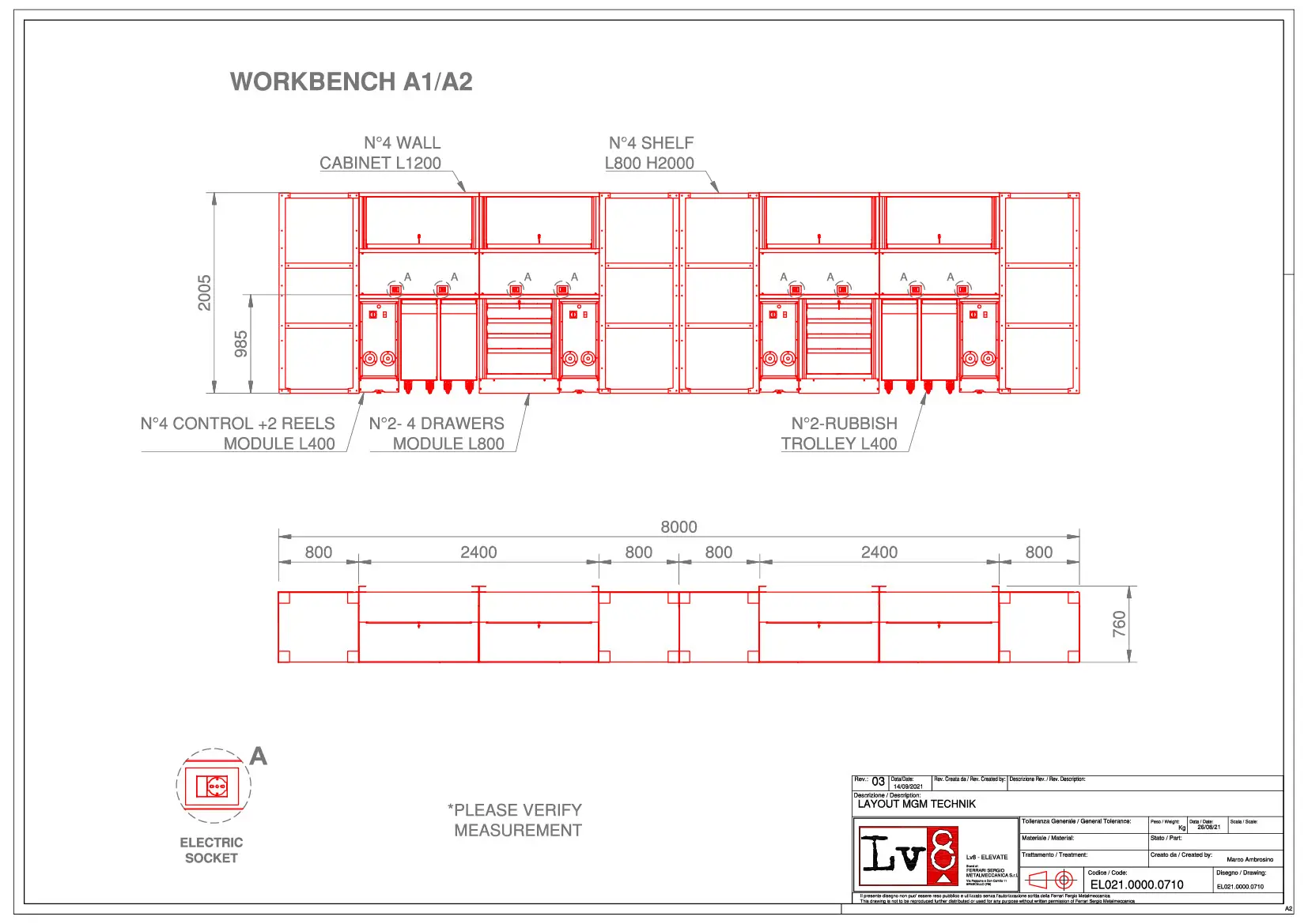 We supply workbenches designed and produced by LV8 with 100% Made in Italy components: