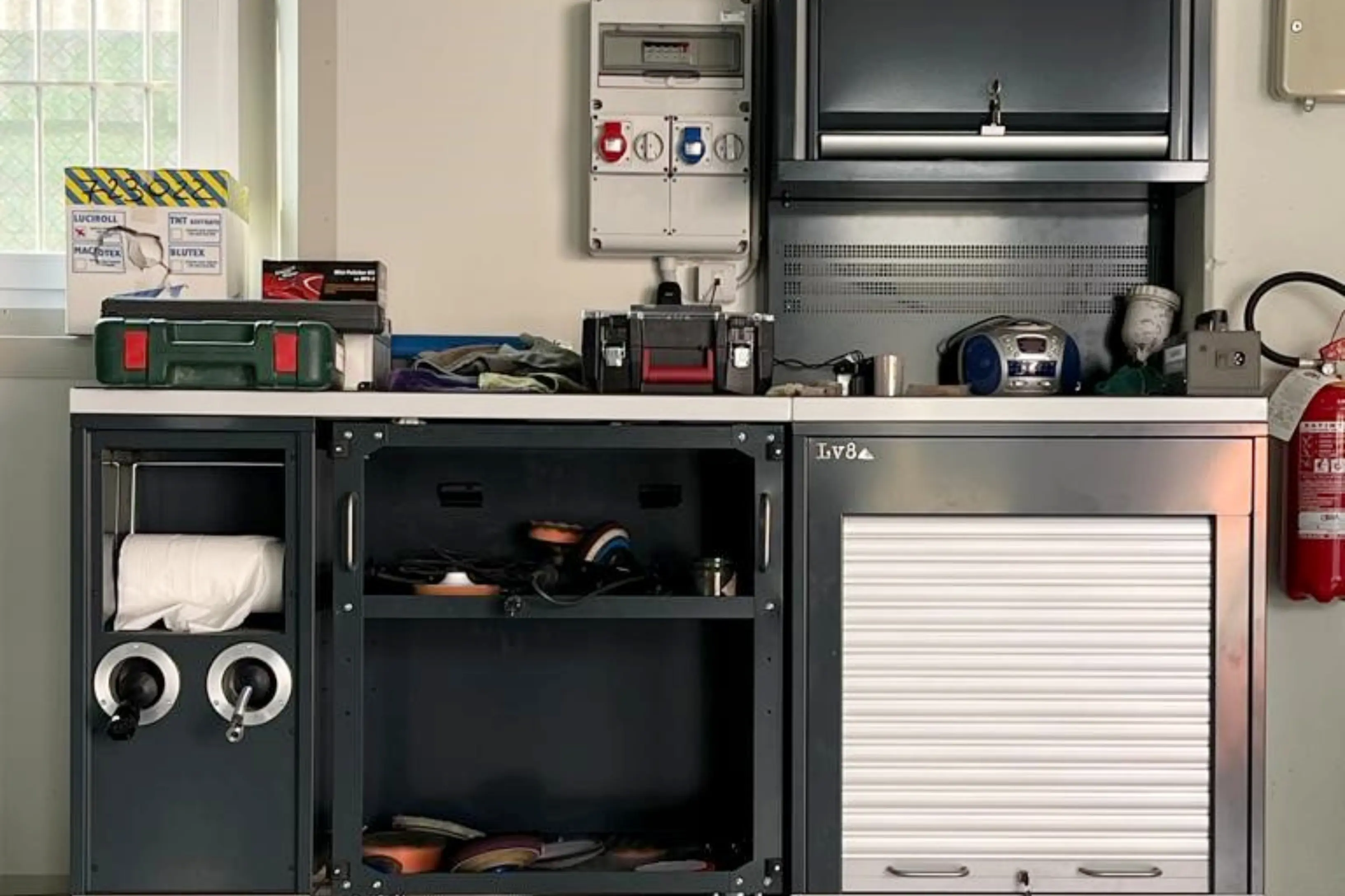 La cura, la personalizzazione e la precisione nei dettagli sono tutte caratteristiche che ci contraddistinguono dai i nostri competitors, e anche stavolta abbiamo impiegato tutte le nostre forze per progettare e fornire a Carrozzeria Borgovico un arredamento modulare componibile personalizzato e 100% Made in Italy. Carrozzeria Borgovico ha scelto una configurazione che comprende: carrelli portautensili a tre ripiani, un kit di prese elettriche, arrotolatori ad aria e a corrente, griglie porta attrezzi, morse da banco e moduli con tapparelle per consentire di riporre gli strumenti da lavoro comodamente al proprio interno, garantendo il massimo comfort e la massima sicurezza agli operatori.