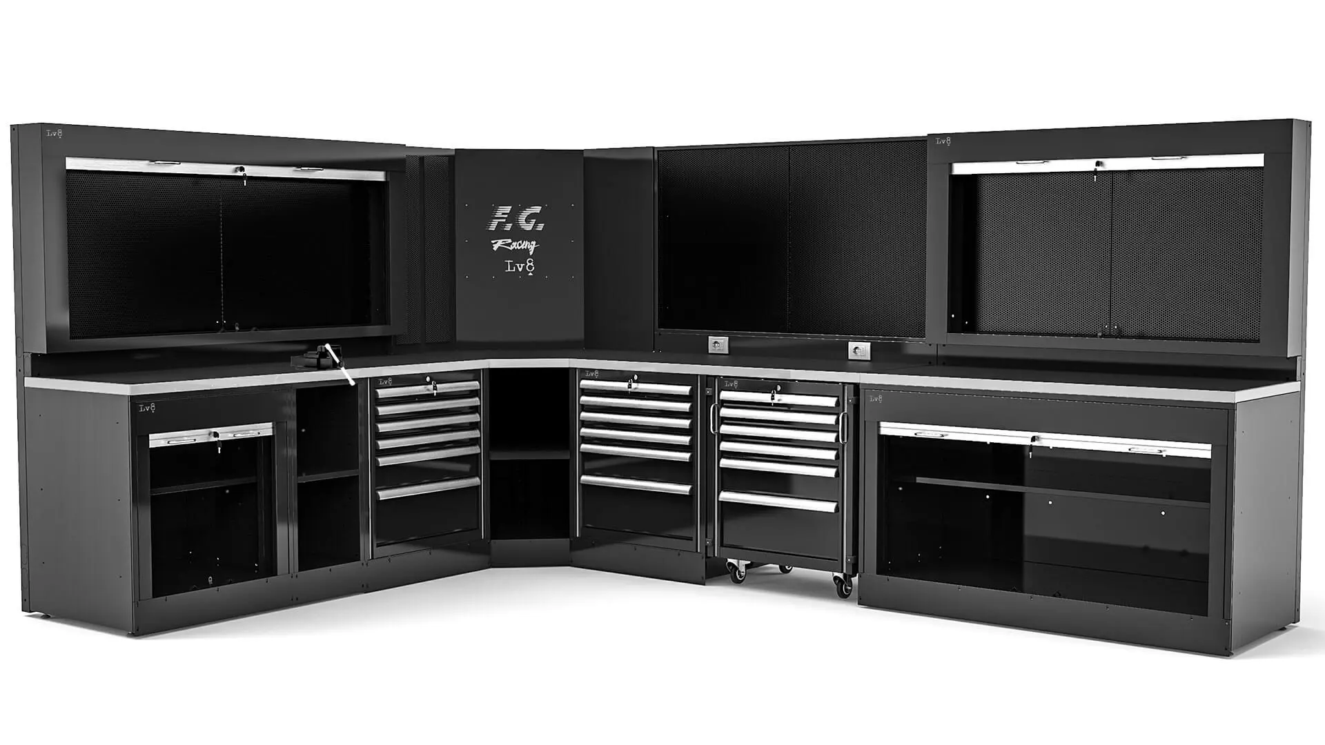 Non poteva quindi mancare un’area officina e R&D di grande funzionalità e design, nel rispetto dell’identità di marca F.G. Racing.